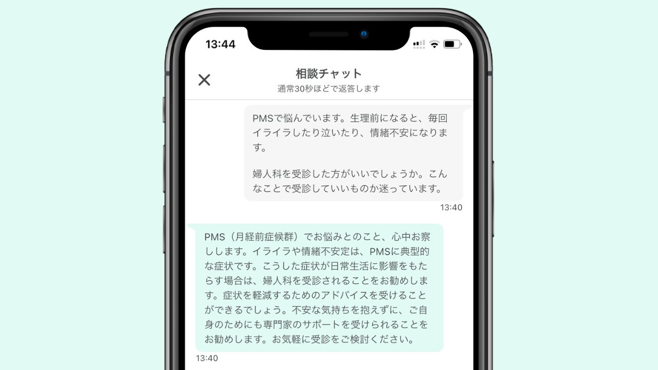 利用者数60万人(※1)のPMS(月経前症候群)対策アプリ「ケアミー」を運営する株式会社ヘルスアンドライツ(本社:東京都渋谷区、代表取締役:吉川雄司)は、生成AIを活用した「相談チャット」機能を開発し、提供を開始しました。相談チャットは、24時間いつでも利用可能であり、利用者からの相談に対して約30秒で返答します。過去にケアミーの利用者から寄せられた1万件以上の相談データおよび生成AIを活用することで自然な対話形式での返答を実現しました。これにより、利用者の「受診すべきかどうか分からない」「受診したが、医師に聞きたいことを質問できなかった」といった不安を迅速に解消し、より充実したサポートを提供します。