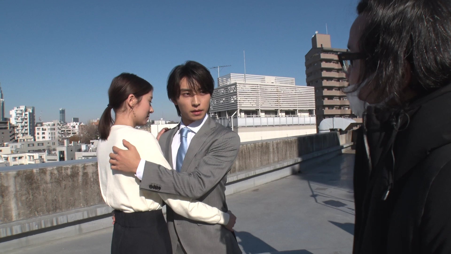 屋上のシーンでは監督より「軽く抱き合って、UFOが降ってきて」と企画説明があった際、阿部さんは「(設定が)無茶苦茶ですよね(笑)」とツッコミつつも、先輩と抱き合うシーンの動きを監督と細かく確認し合うなど、常に真剣に撮影に挑まれている様子が印象的でした。最後はスーツを脱ぎ、裸のサウナのシーンの撮影となったのですが、プライベートでもよくサウナに行かれるとのことで、スーツの時と違ってかなりリラックスした様子でした。