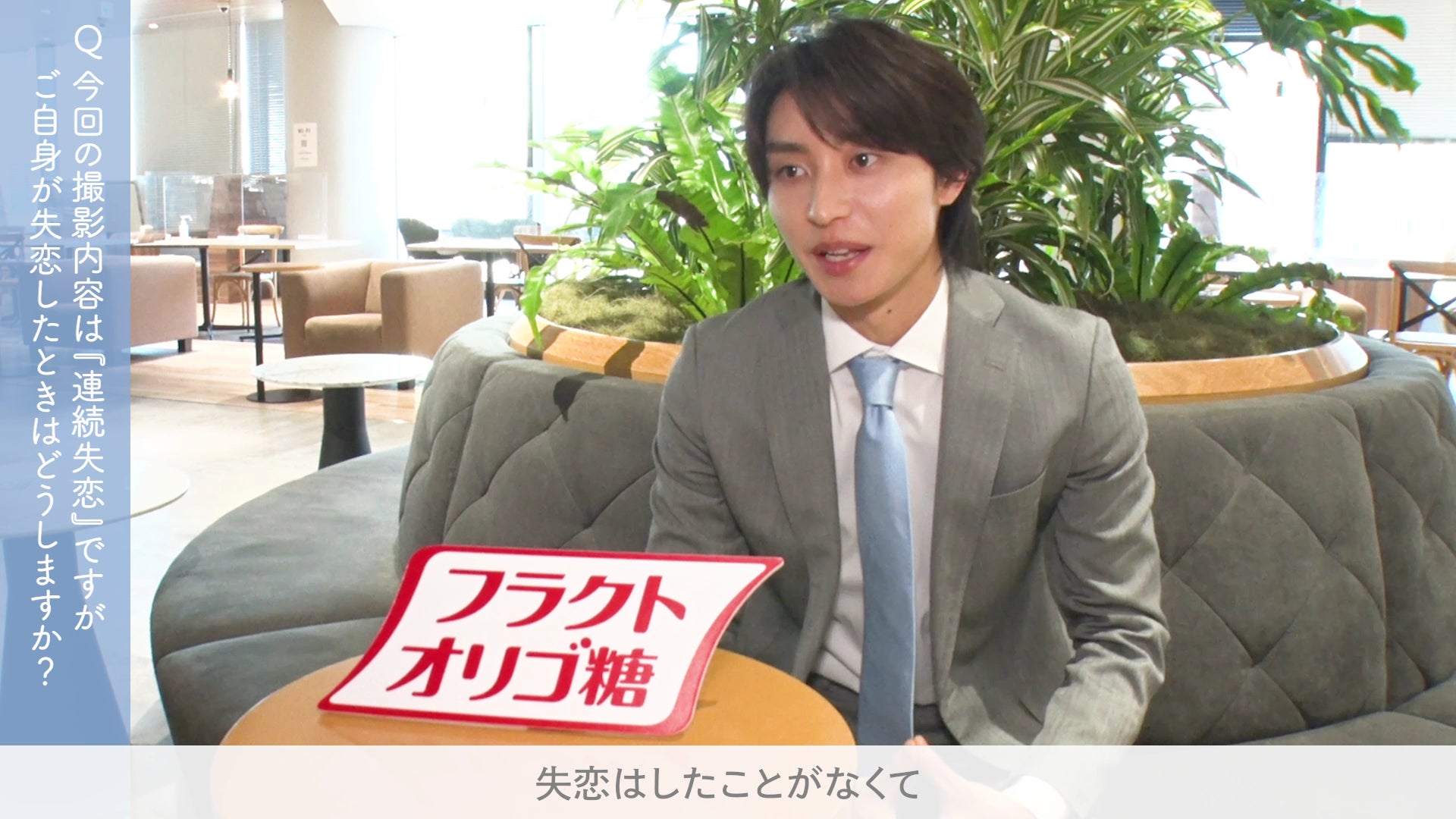 A.第一に面白いなっていうのはありまして、僕がお芝居すると、カメラの前にいるスタッフも笑ってくれるから、充実感のある撮影ですごく楽しいです。あとは、フラクト君のフラクトオリゴ糖の扱いってどういう扱いなんだろう皆さんってちょっと思いました。個人的に。フラクト君がすごく失恋するから、なんでフラクト君って失恋するんだろうって、そもそものテーマがどうしてなんだろうってちょっと思っています。