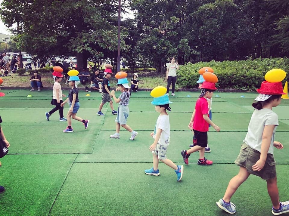 ハットをかぶって、ラグビーボールを載せて、落ちないように、そ~っと動いて、障害物を超えながら、ボールを落とさないでトライゾーンまで競争するゲーム。今回は小さなお子様も楽しめるように特別ルールで遊びます。大人も子どもも、みんなで楽しめるラグビーボール遊びです。