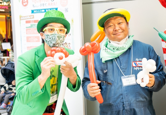 バルーンアートのパフォーマー先生は「ポリスじろう」さんと「成瀬わさび」さん。