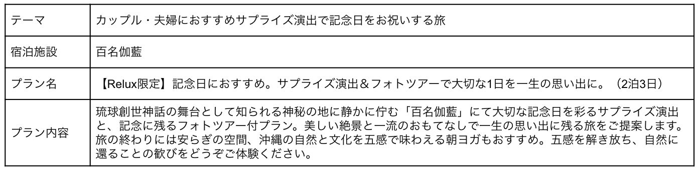 〇モデルコースA (カップル・夫婦におすすめサプライズ演出で記念日をお祝いする旅)