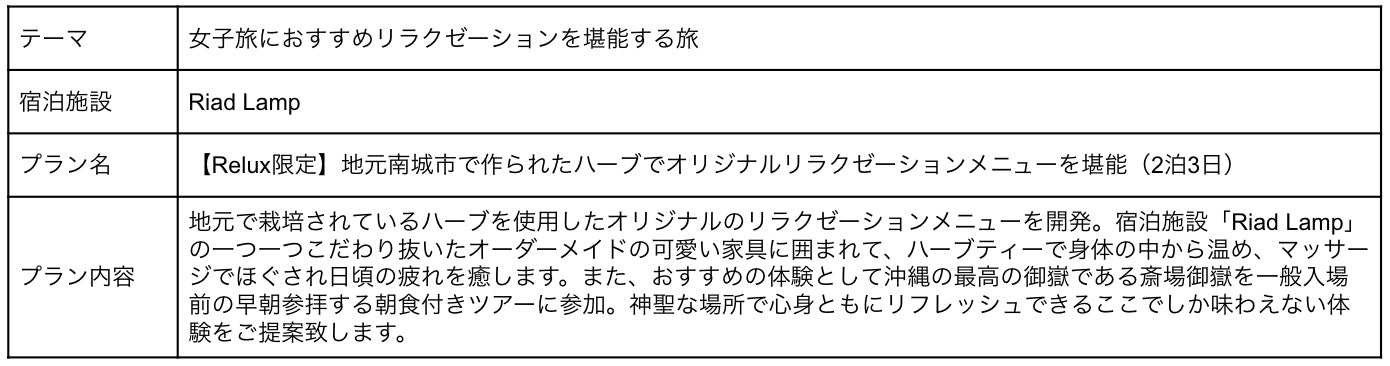 これまでReluxは、「どんな未体験に泊まろう。」をタグラインとして掲げ、旅を通して人生を豊かにするため、特別な体験をとどけてきました。今後、特別な宿泊体験のさらなる向上のため、旅先の地域や文化に触れることで自分の視野を広げられるような、気づきのある体験を提供していきたいと考えています。