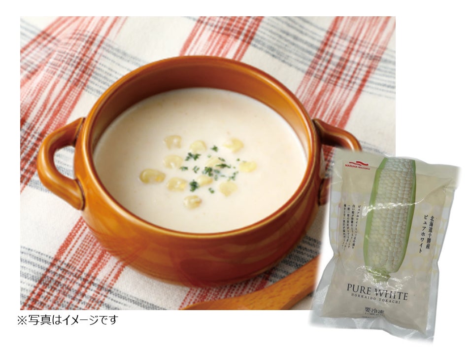 白い粒が特徴のとうもろこし。一粒一粒の果皮がとても柔らかく噛むと甘い果汁が溢れだします。