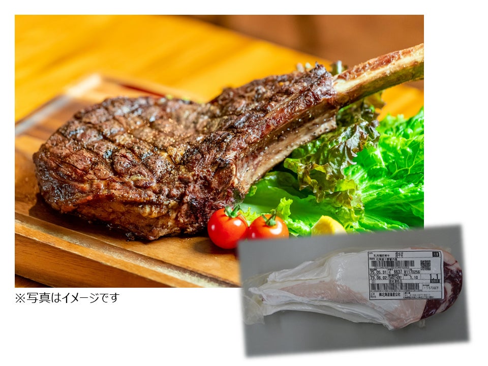 ステーキにすると味もボリュームも大満足な、インパクト抜群の骨付き肉です。