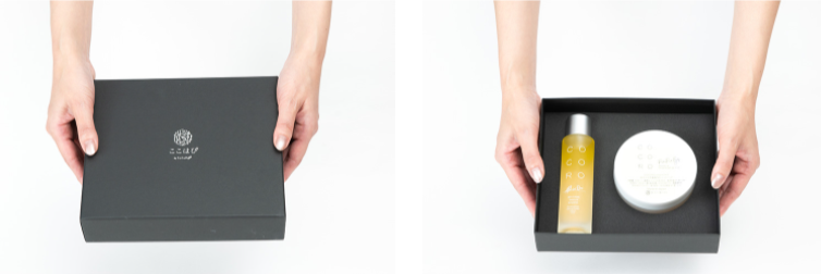 ギフトとして選んでいただくことも多い、オールインワンCOCORO化粧美容乳液と目元・口元専用ゲルパックピンピンアイズのセット。オリジナルギフトボックスをご用意いたしました。漆黒の上質な箱に入れて、大切な方へお届けいたします。