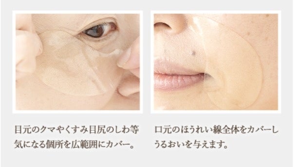 ぷるんぷるんの特殊製法 濃縮GELシートは、お肌にしっかり密着します。大きめのサイズなので目元と口元を広範囲でケアが可能。シートを目元や口元に貼ってしばらくすると、お肌とパックの水分差によって、どんどん美容液成分がお肌の中に移動します。長時間お肌に貼り続けることで有効成分を逃さず角質層まで浸透します。