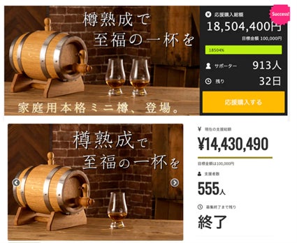 3,293万円を先行販売のみで売上。伝説の家庭用ミニ樽の第二弾。日本人に馴染み深い桜と、希少なスパニッシュオークを使用して数量限定販売開始!