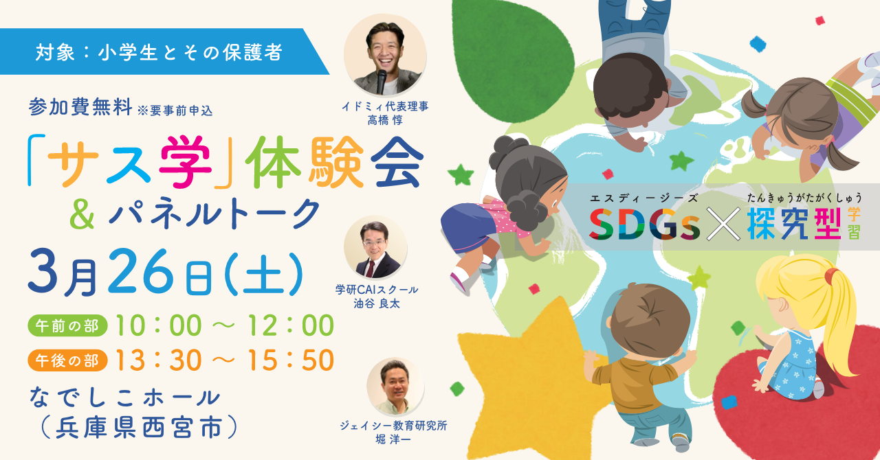 【参加無料】SDGs×探究型学習「サス学」体験会開催!子どもも大人も参加しよう!@兵庫県西宮市 なでしこホール