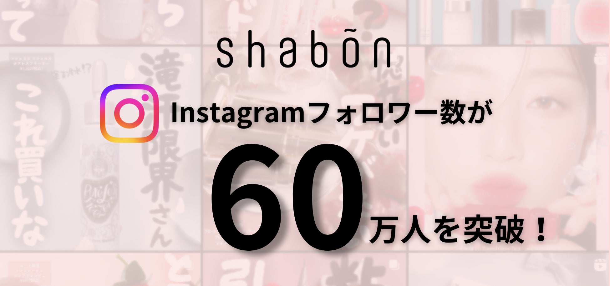 日本最大級のSNS美容メディア「shabon」のInstagram(@shabon_official)のフォロワー数が60万人を突破したことをお知らせいたします。