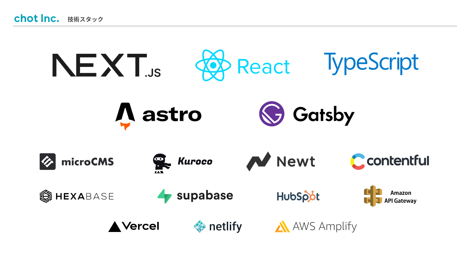 いくつもの制作・開発案件に携わっていくなかで、2021年夏頃よりJamstack(※)と呼ばれるアーキテクチャによる依頼を受ける機会が増え、この1年間でフロントエンドに特化したエンジニア人材を10名以上採用し、多数のプロジェクトを手掛けてまいりました。
