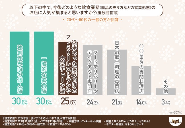 【20代~60代に聞いた!】今後人気が集まると思う飲食業態は『独創志向の個人店』や『一般的な飲食店』