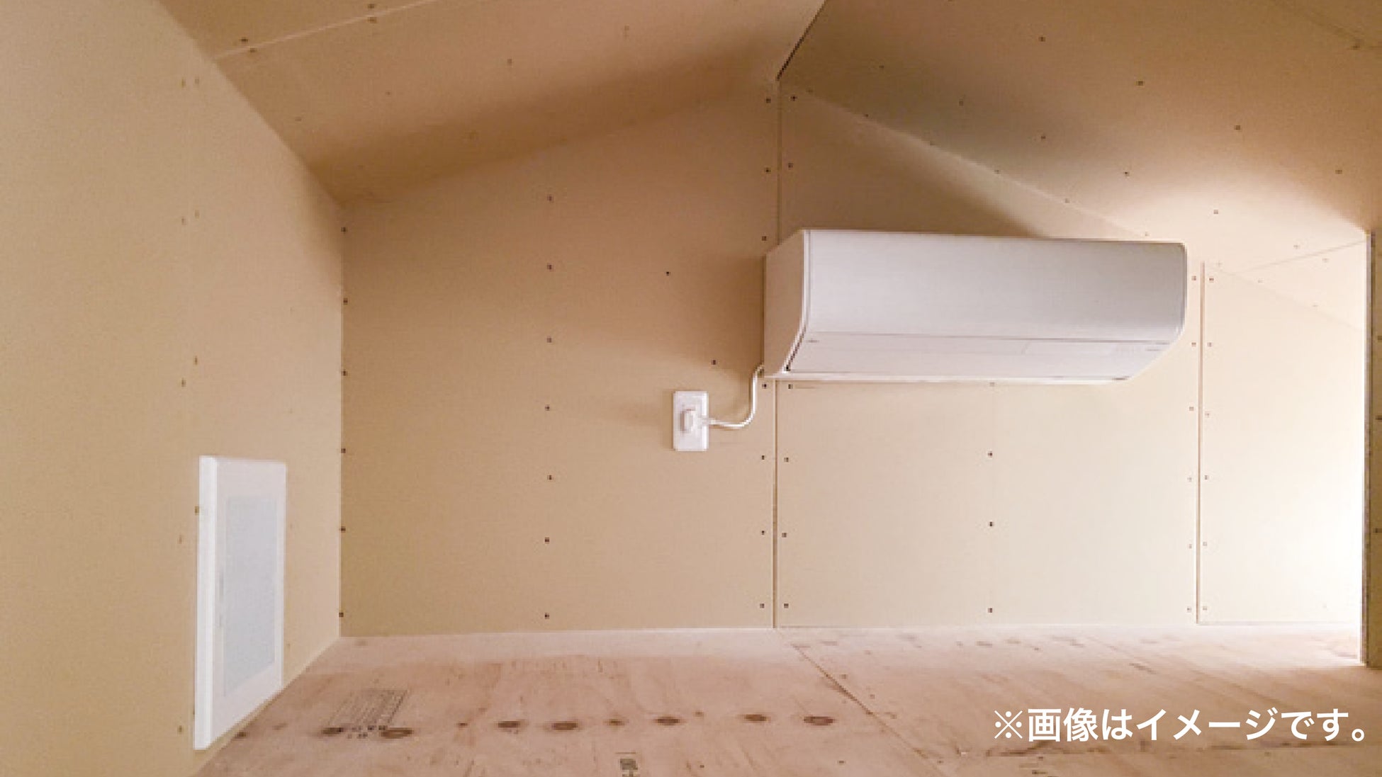小屋裏に設けたエアコンは夏の冷房用として使用し、エアコン1台で、全ての部屋をバランスよく冷やし、涼しく快適な空間を作ります。また、26㎡もあるので、季節物・箱物などの収納としても活用できます。