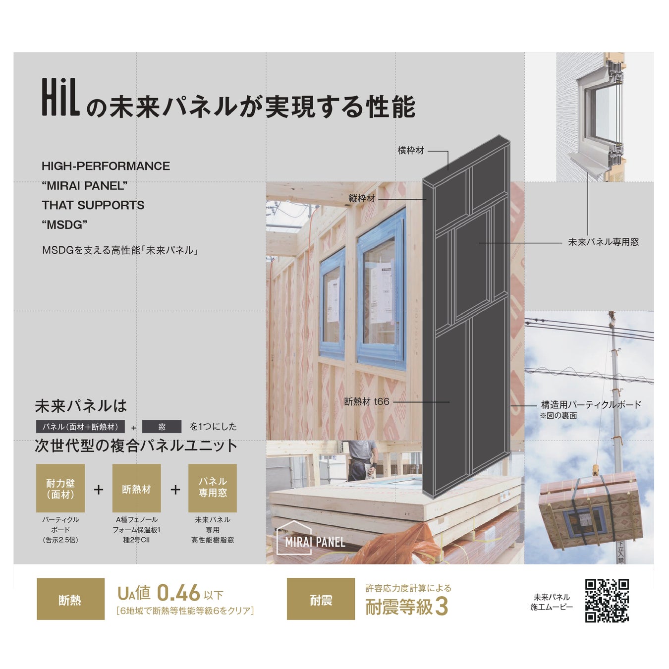 ※1:HiL(ハイル)の高性能住宅は、UA値0.46以下[6地域で断熱等性能等級6をクリア]・耐震等級3を標準装備し、高断熱・高気密・高耐震を実現しています。