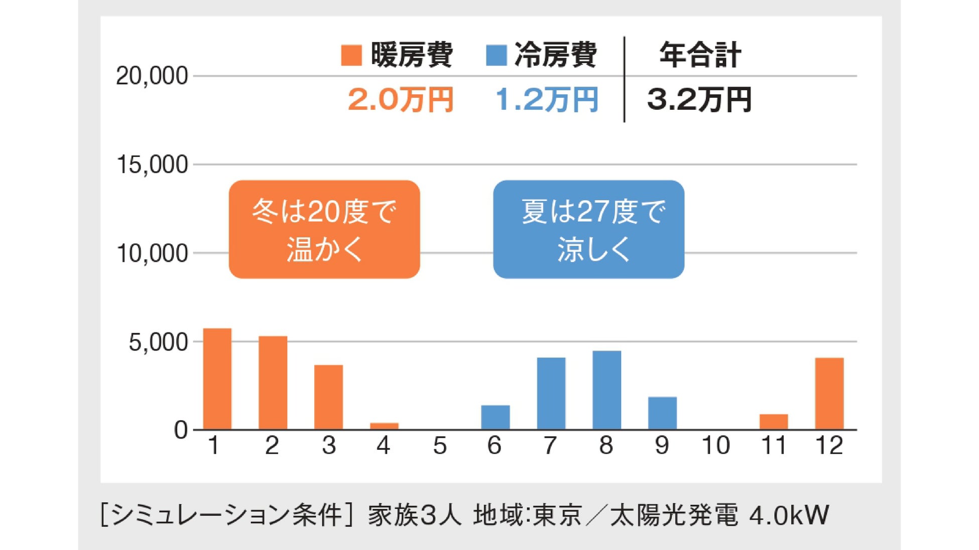 冬は床下エアコンで床全面がほんわり暖かく、夏は小屋裏エアコンで部屋全体が涼しくなる設計で、年間の暖冷房費用は非常に少なく抑えられます。