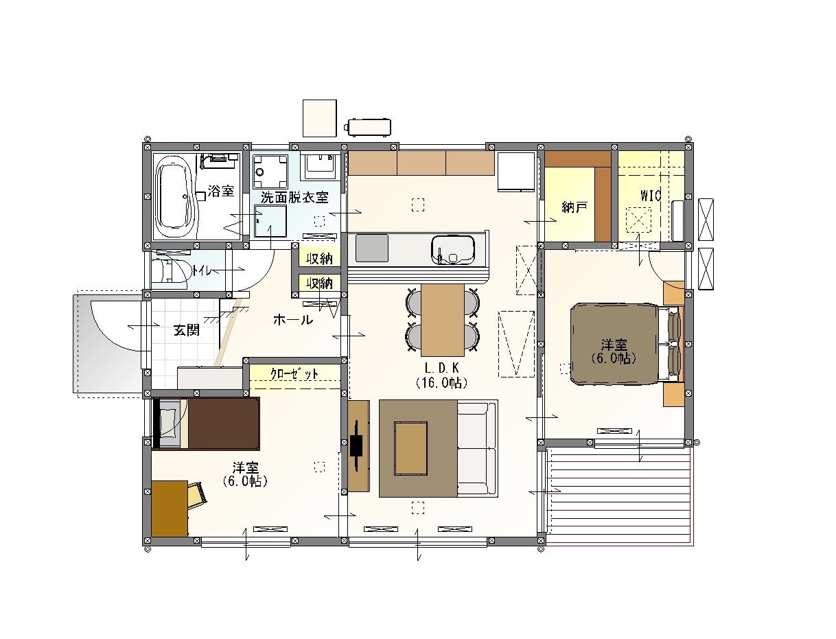 いつまでも安心して暮らせる、スモールファミリー(2、3人の家族)にちょうど良い平屋