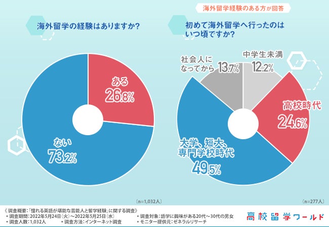 そこで今回、『ジブン流学』や『高校留学ワールド』などのサービスを展開している株式会社アットワールド(https://www.highschool-world.com)は、語学に興味がある20代~30代の男女を対象に、「憧れる英語が堪能な芸能人と留学経験」に関する調査を実施しました。