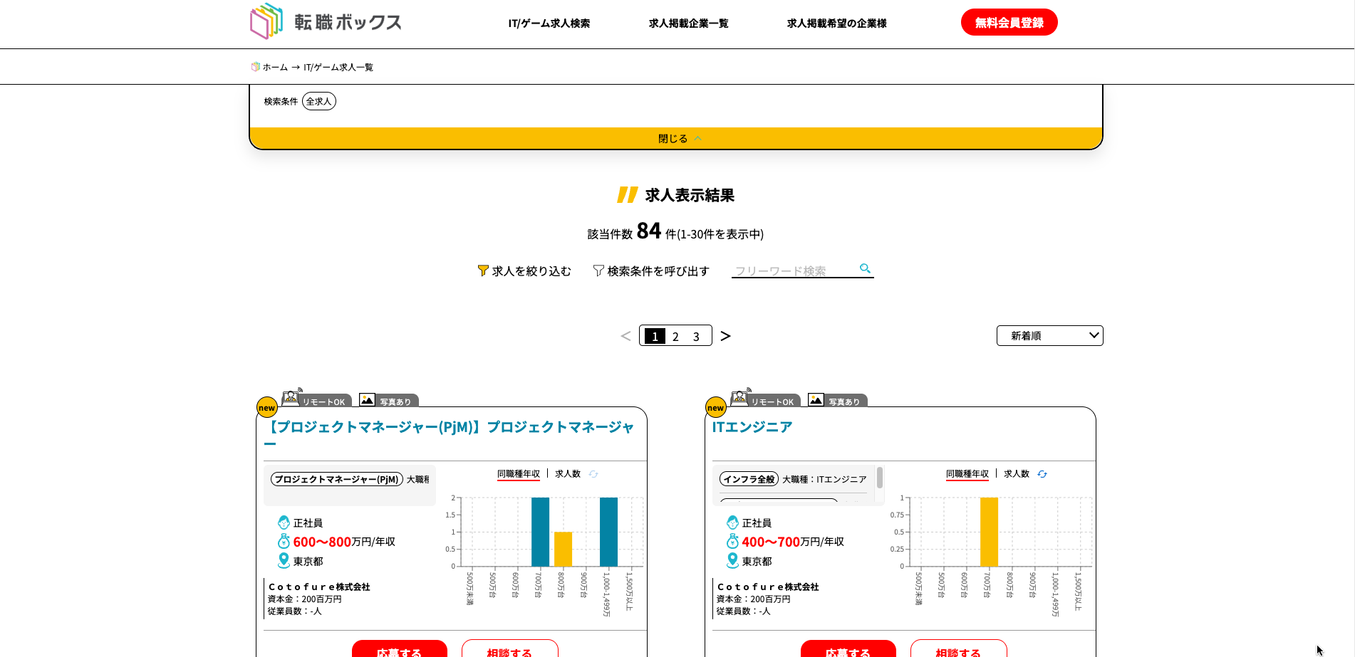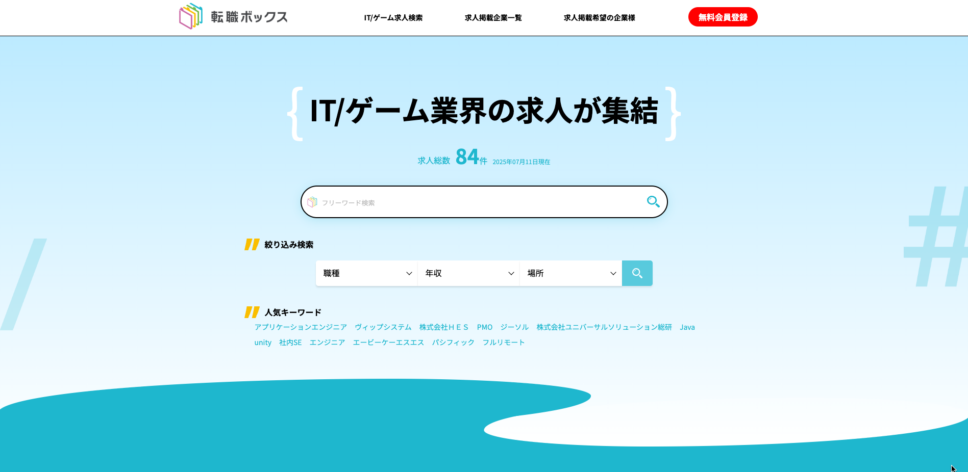 転職ボックスはIT/ゲーム業界の人材にスコープを絞り、より専門性の高い人材を集めた業界特化型求人サイトです。