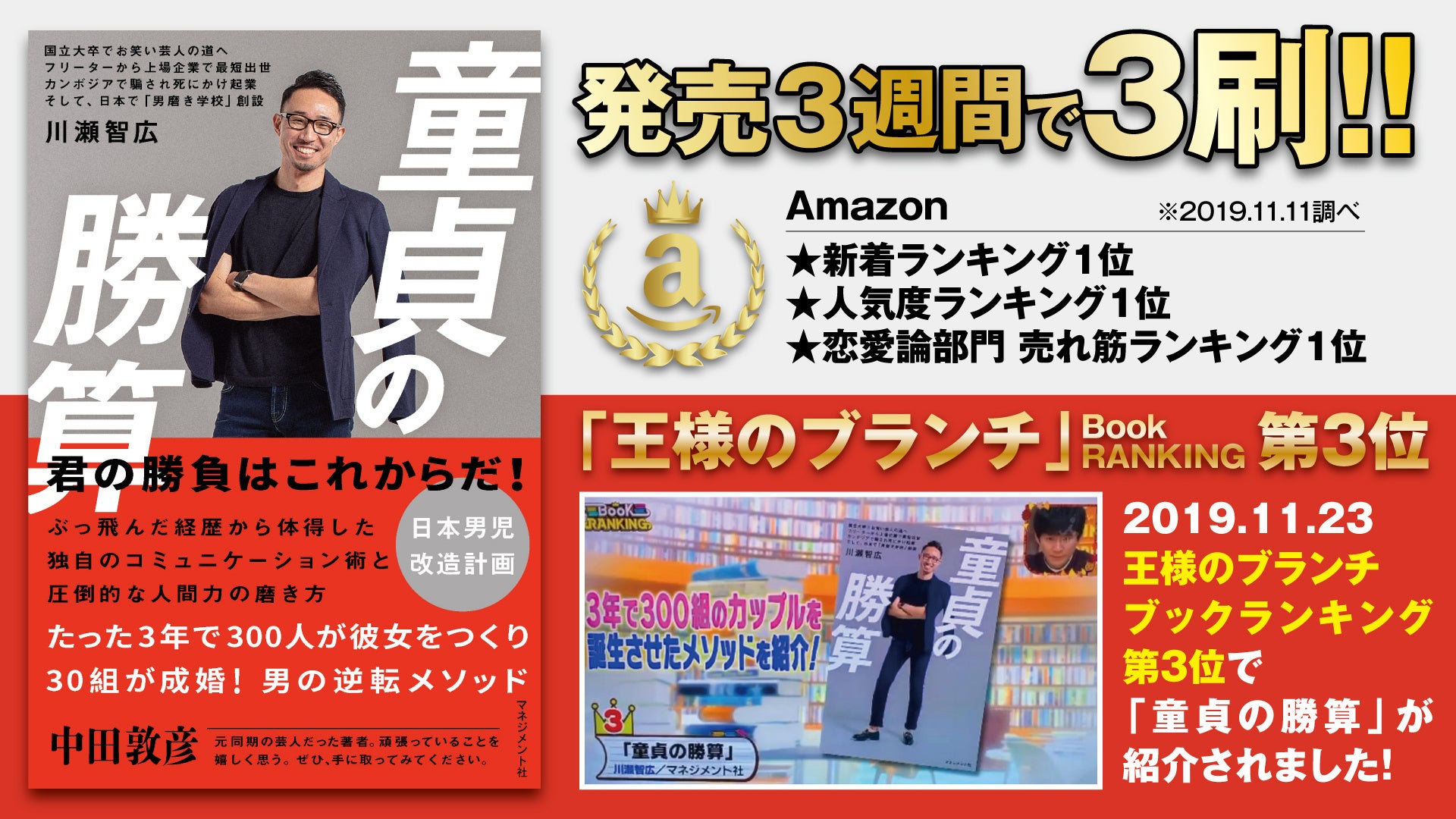 約2万部のベストセラー本「童貞の勝算」(著者:ブライトフォーメン代表 川瀬智広)