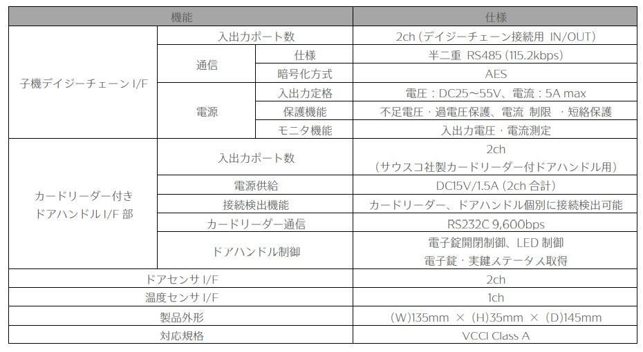 本製品の子機への電源は親機から制御通信ケーブルを通して供給されるため、設置時に大規模な電源工事を行う必要はありません。また多様なサーバーラックに対応する電子錠ハンドルを採用したことで、既存のラックに取り付けることができます。これにより既存のデータセンターにも容易に導入することができます。
