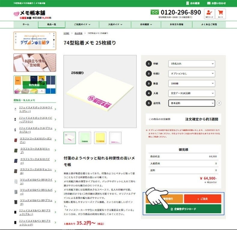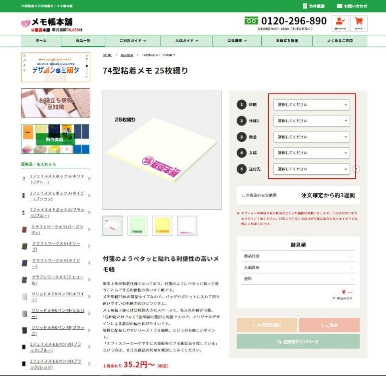 「メモ帳本舗」は、販促用のメモ帳を専門に販売するECサイトです。