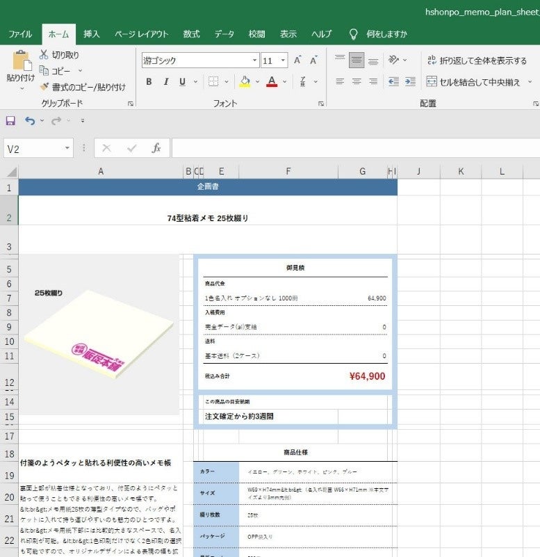 企画書のフォーマットは、画像のようなエクセルファイルです。