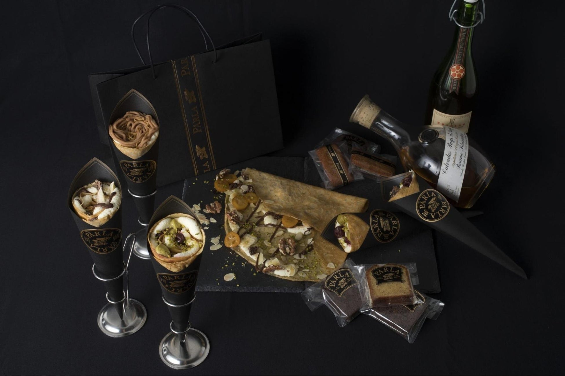外苑前・銀座のショップでは、クレープとアルコールを合わせる「大人のマリアージュ」を提案。
