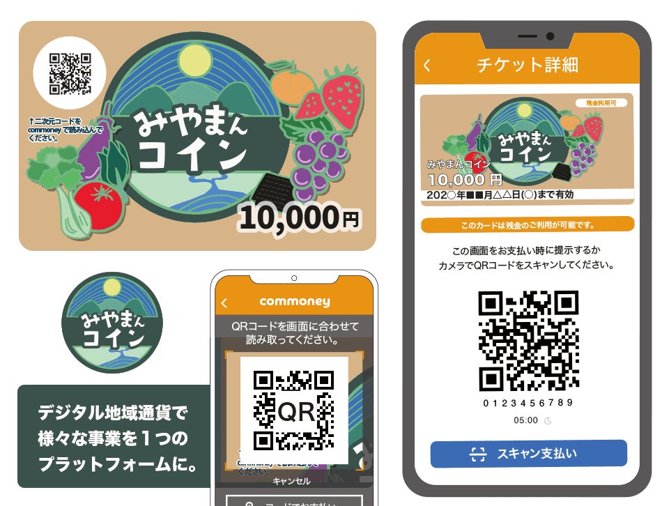 「みやまん・コイン」は、みやま市のデジタル給付の受け口として運用されています。市民が受け取った「みやまん・コイン」は、市内の加盟店での買い物などに利用され、経済の地域循環を生み出しています。