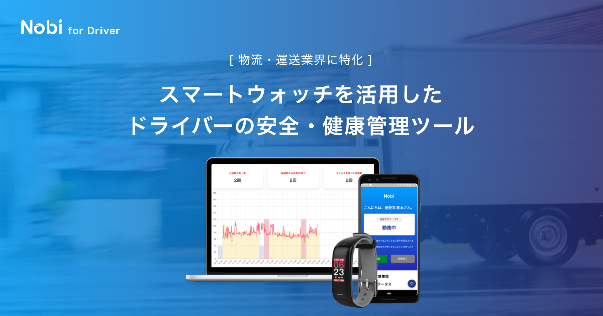 「Nobi for Driver( https://nobi-app.com/driver )」は専用スマートウォッチ「Nobi Band」から取得される心拍データを分析することで、運転中のドライバーのアラート検知および健康状態を可視化することができるサービスです。