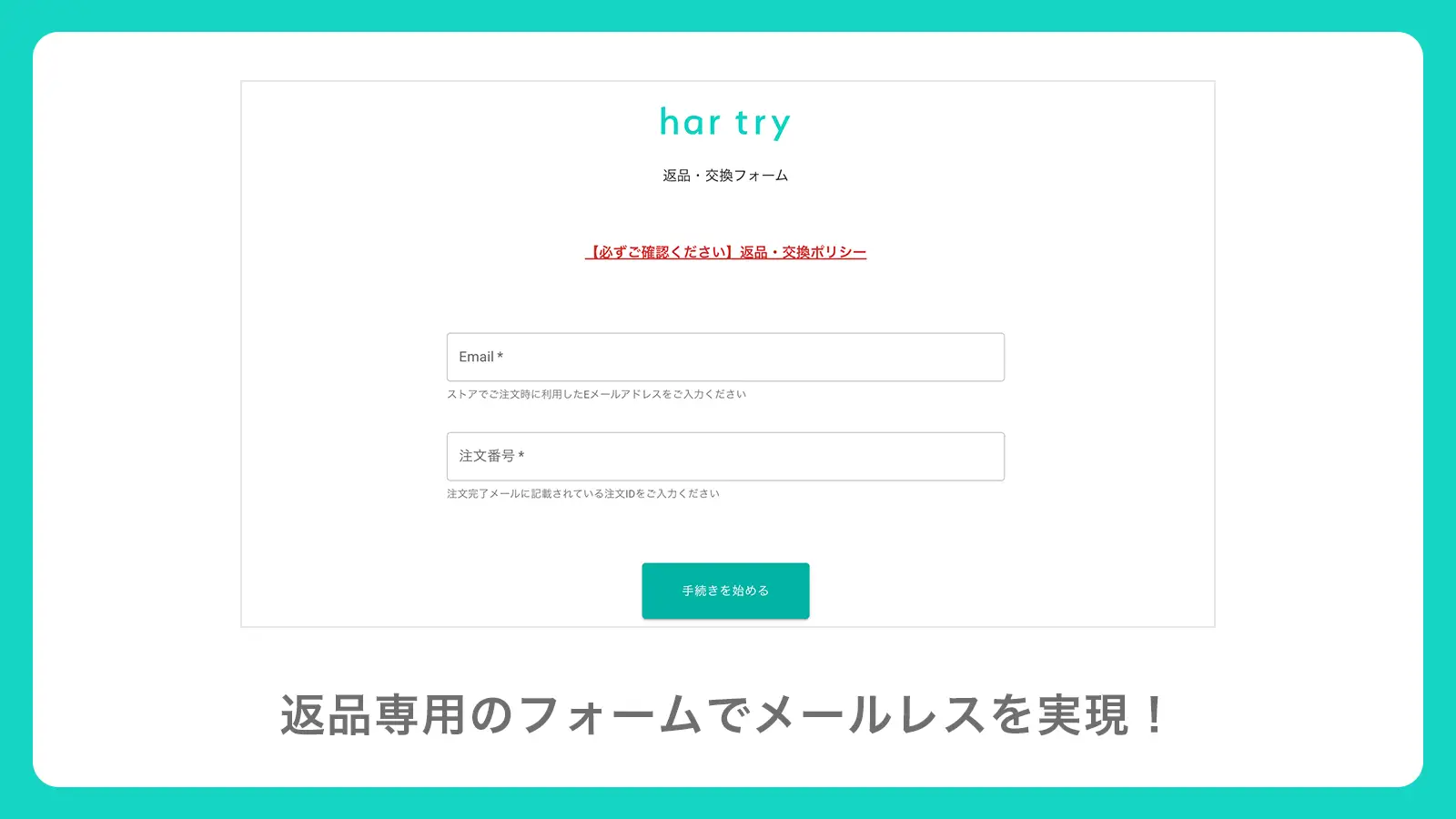 返品専用のフォームと自動返信メールをご利用いただくことが可能です。メールやエクセルを用いた煩雑な返品対応を簡略化いたします。