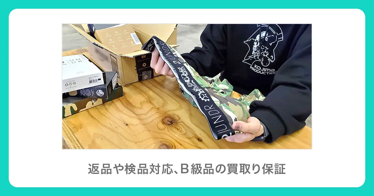 har tryでは返品物流までご対応をいたします。返送品の送り先を当社に指定していただき、当社専門スタッフによる検品対応を行います。万が一B級品となって返品された場合には、har tryが買取保証までをご提供いたします。
