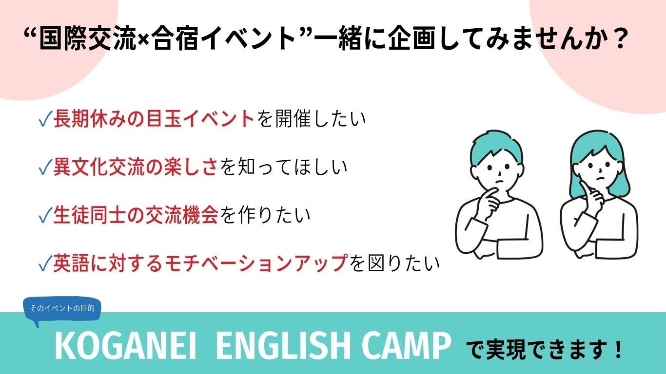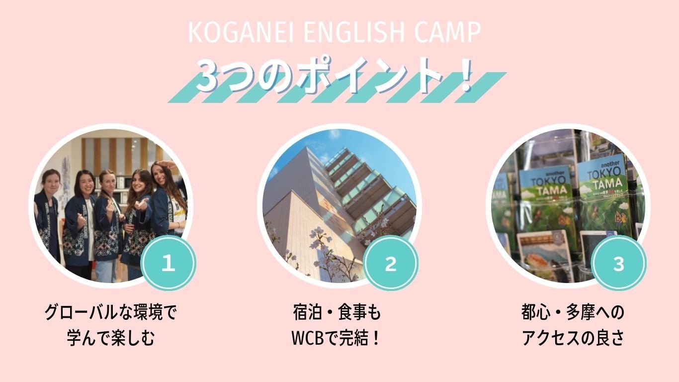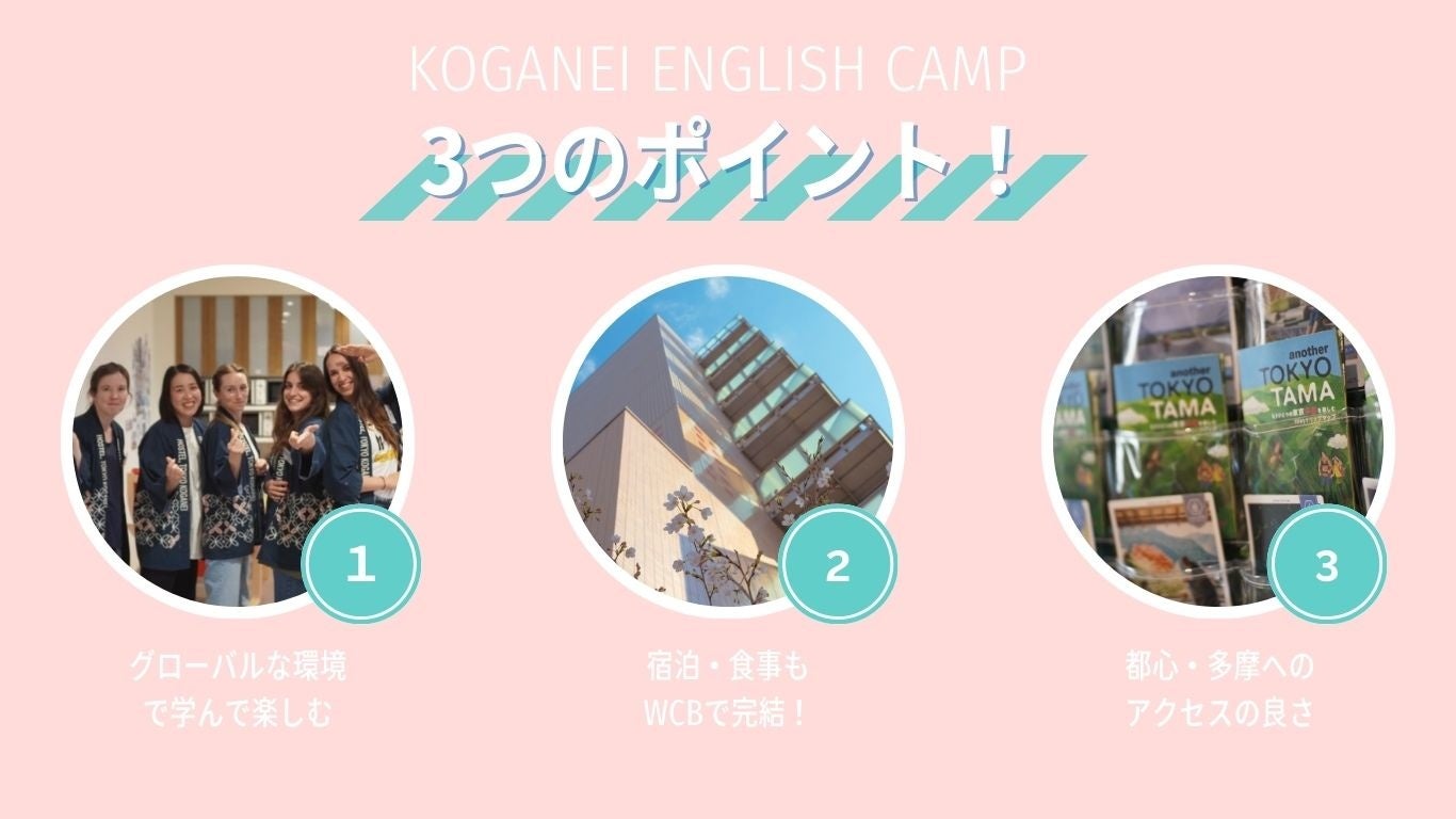 「東京で気軽に」「リーズナブルな価格で」「異文化交流体験」ができるKOGANEI ENGLISH CAMPをお届けします!