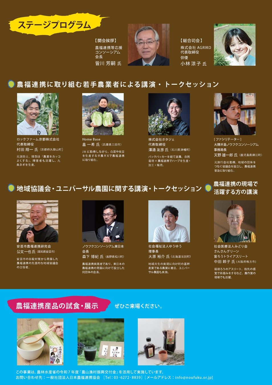 共催:一般社団法人日本農福連携協会、株式会社インサイト、農福連携等応援コンソーシアム、農福連携全国都道府県ネットワーク