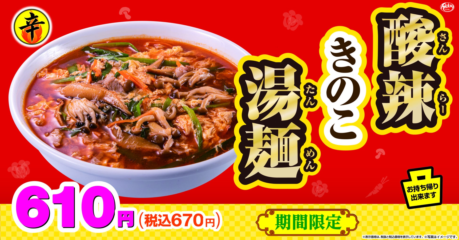 日高屋 季節商品「酸辣きのこ湯麺」 期間限定で販売開始!
