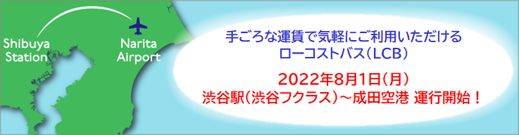 「渋谷 ~ 成田空港」 ローコストバス(LCB)2022年8月1日(月)より 運行開始いたします!