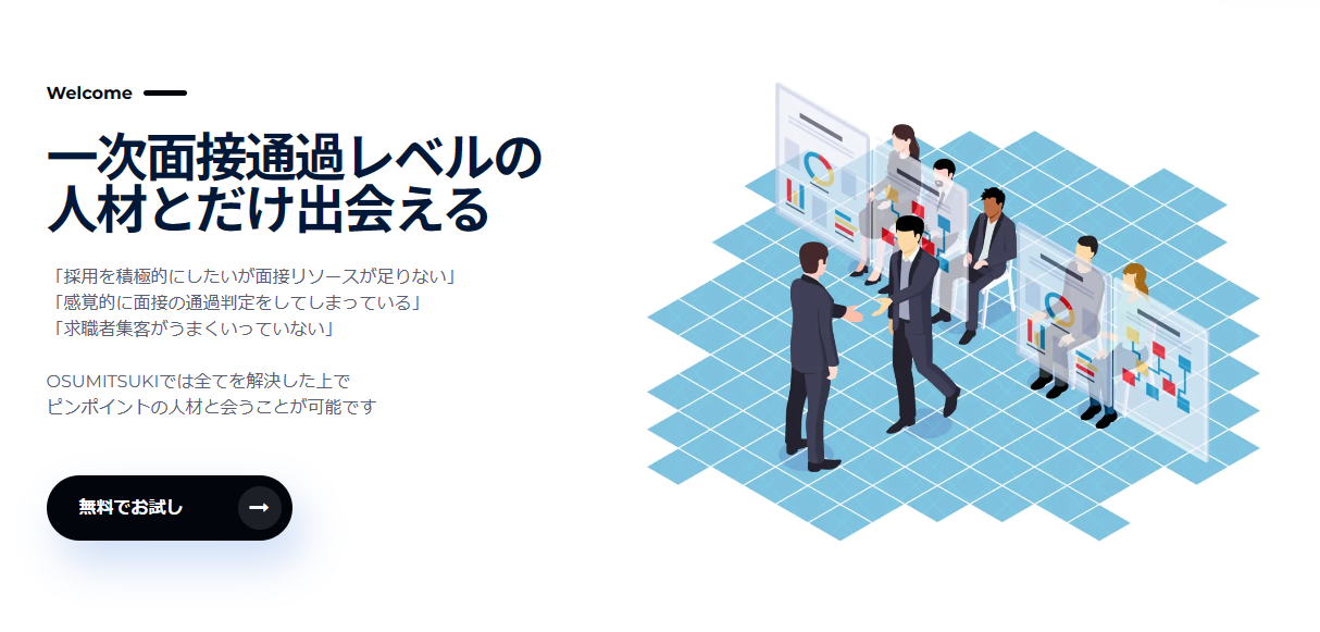 OSUMITSUKIでは、これらを解決した上で、ピンポイントの人材と会うことが可能です。