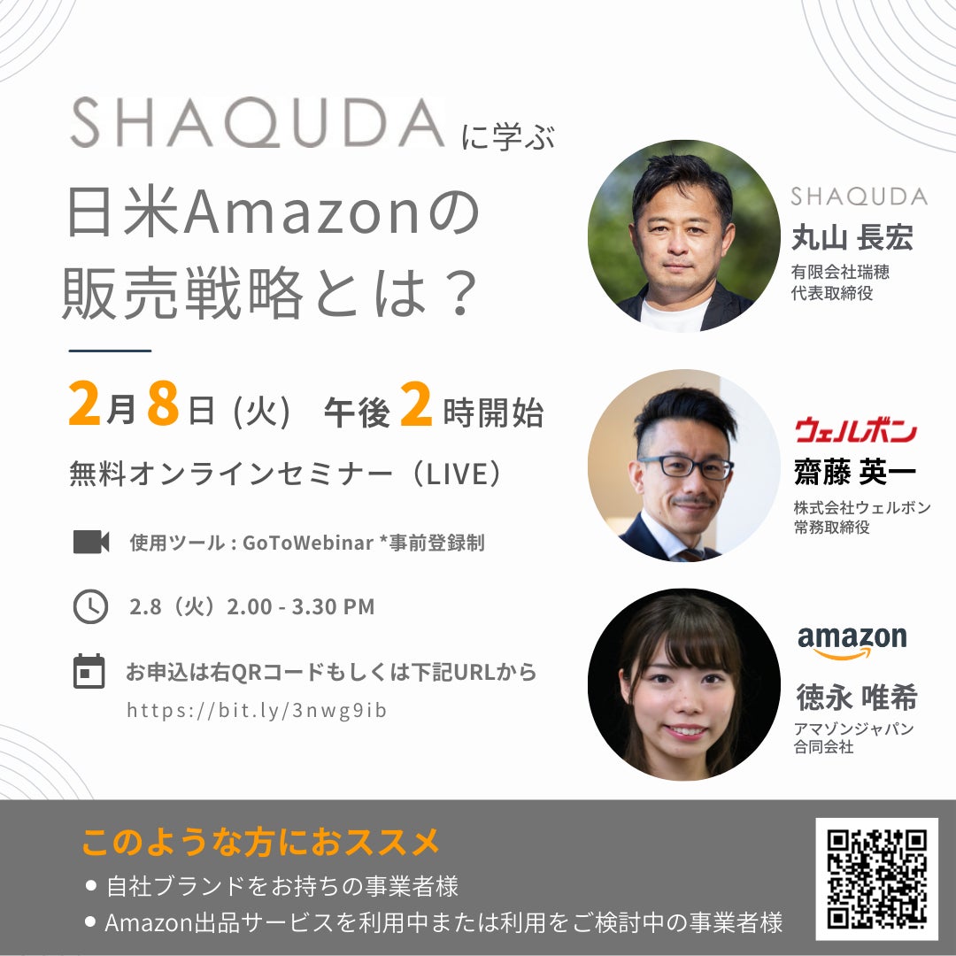 【自社ブランドをお持ちの事業者必見!】2/8(火)Amazon共催セミナー、SHAQUDA(シャクダ)に学ぶ 日米Amazon販売戦略。