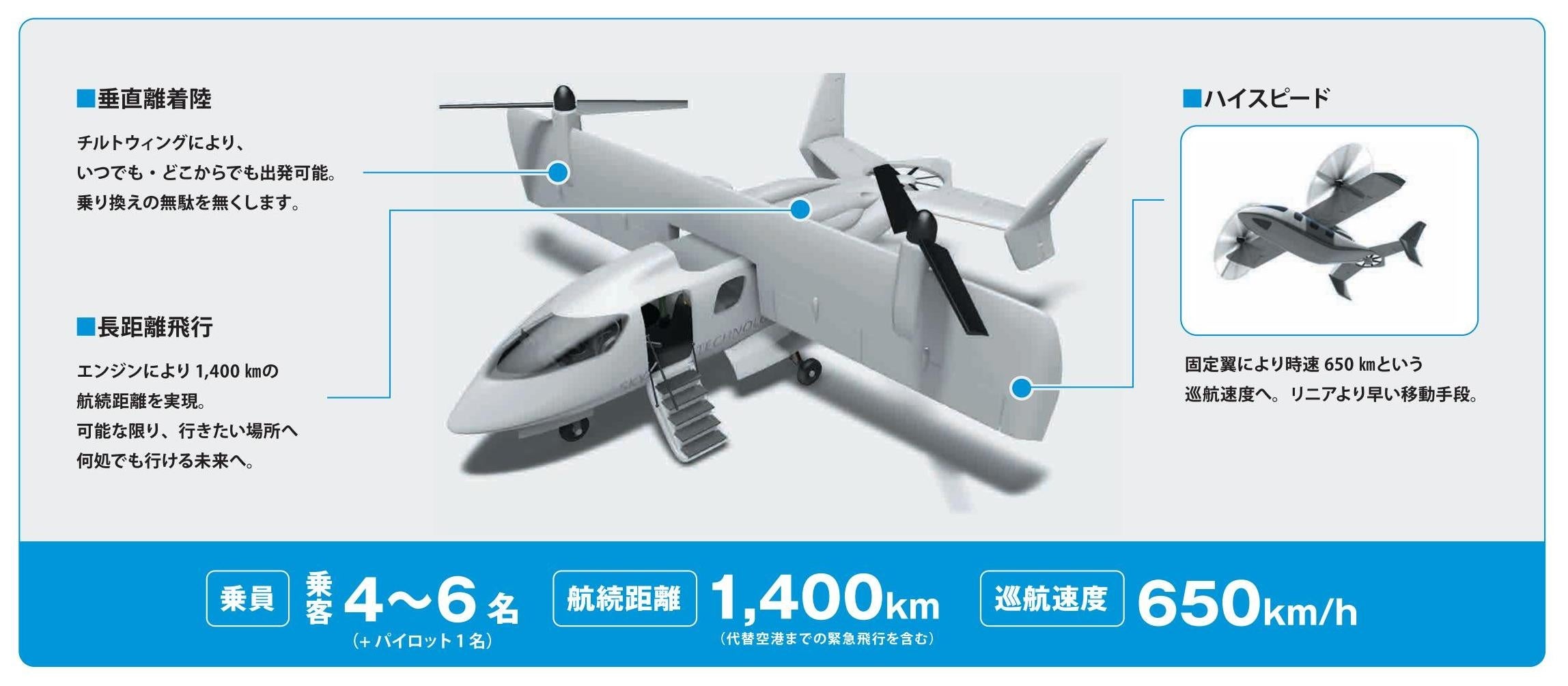 長距離・高速移動が可能なVTOL機の開発を更に推進
