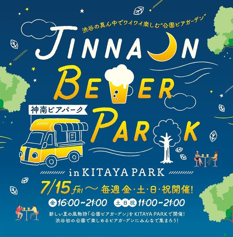 SHIBUYA KITAYA PARKでは7/15(金)~渋谷の真ん中でワイワイ楽しむ“公園ビアガーデン”『JINNAN BEER PARK』を開催!渋谷初の公園で楽しめるビアガーデンにみんなで集まろう!