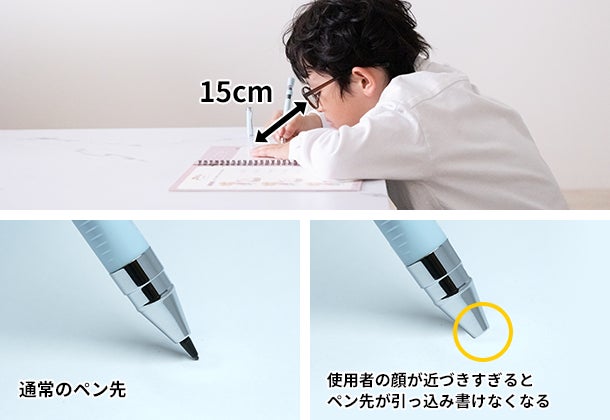 ~360度近接センサーがペンと目の距離を計測、自動でペン先が引っ込む~