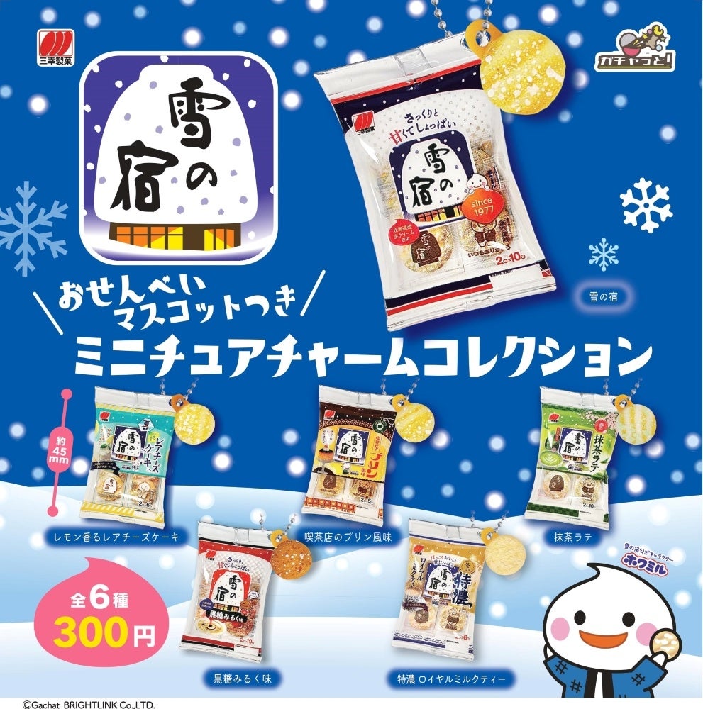 三幸製菓株式会社(代表取締役CEO:佐藤元保、所在地:新潟市北区)は、株式会社ブライトリンク(代表取締役社長:佐藤明香里、所在地:東京都新宿区)とコラボレーションし、1977年より長年お客様からご愛顧いただいている「雪の宿」のカプセルトイを2024年2月下旬から全国のカプセル自販機で順次展開いたします。