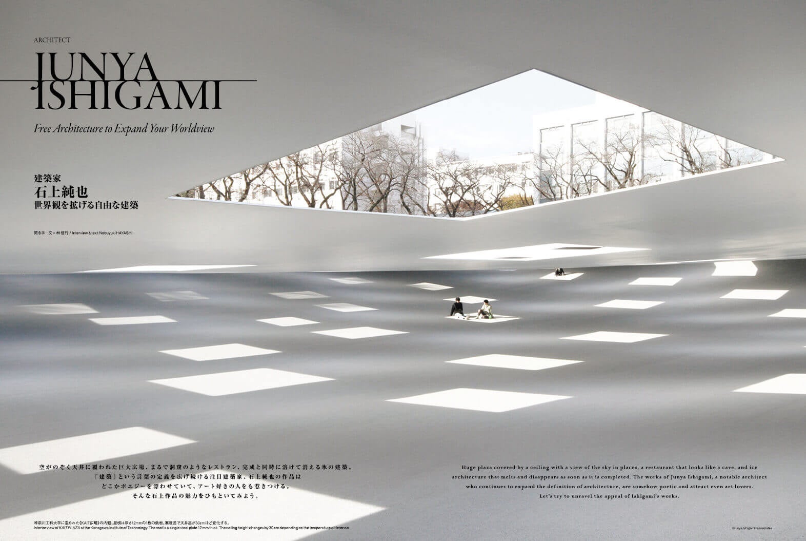 空がのぞく天井に覆われた巨大な《KAIT広場》や洞窟のようなレストラン《House & Restaurant》、「HOKUTO ART PROGRAM」で完成と同時に溶けて消え話題になった氷の建築《ソラトツチニキエル》など、「建築」を形式的な形から解き放ち、その言葉の定義を広げ続ける建築家・石上純也。どこかポエジーを漂わせ、アート好きな人を惹きつける石上作品の魅力をジャーナリスト林信行がひもとく。