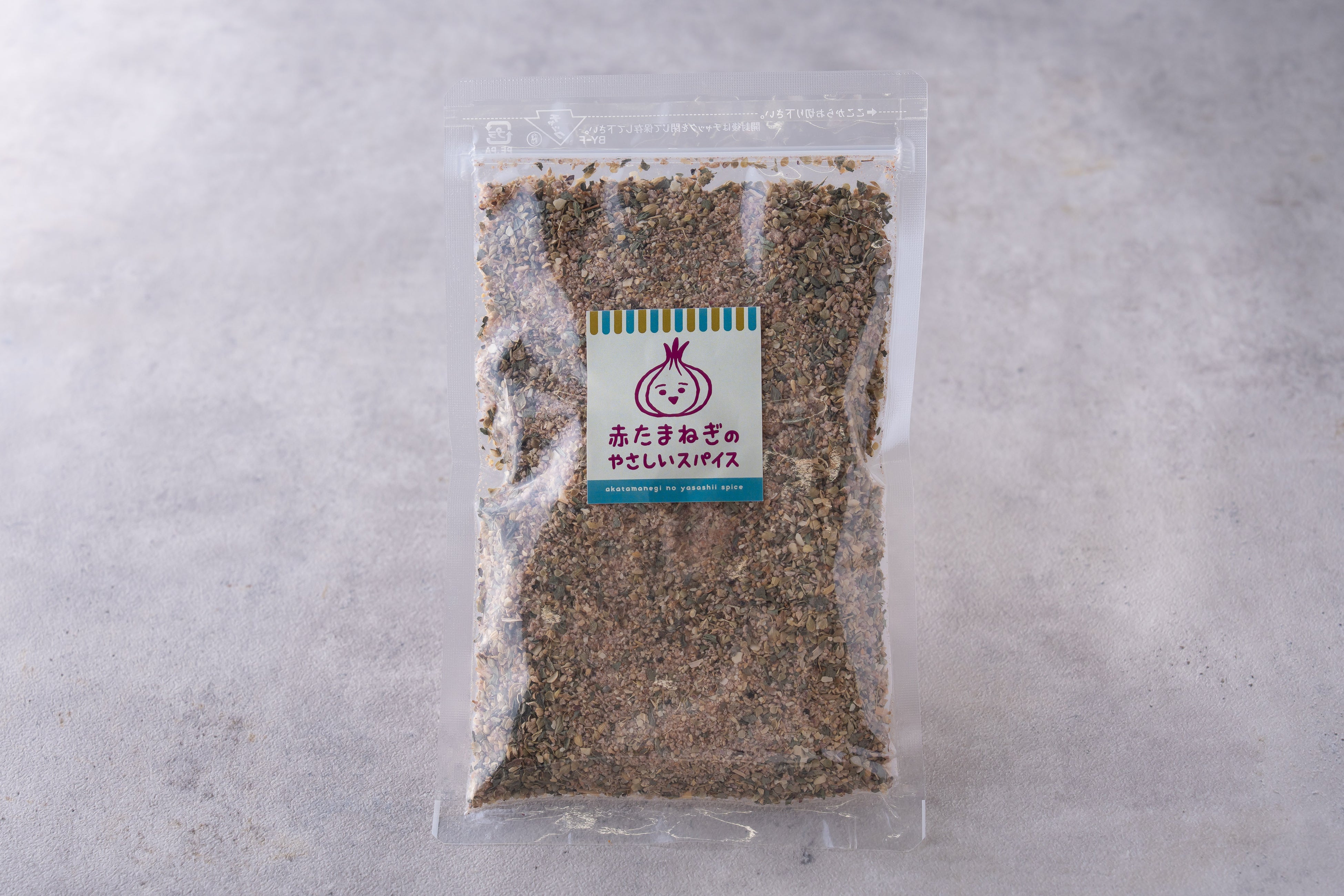 原材料:食塩(国内産)、赤たまねぎ(国内産)、ガーリック、コリアンダー、バジル、オレガノ、パプリカ、黒こしょう