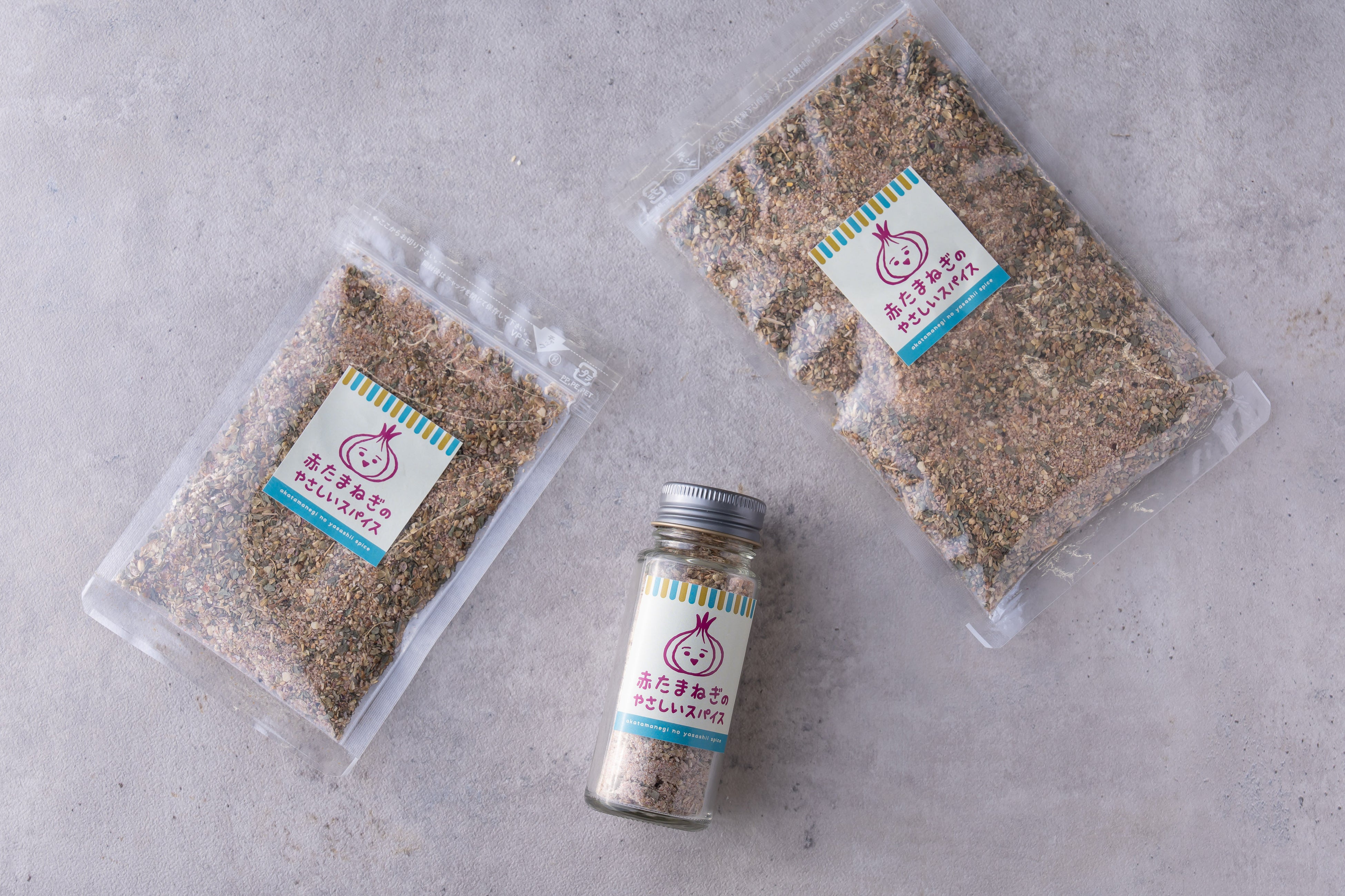 『赤たまねぎのやさしいスパイス』は、辛みが少なく、甘みの強い赤たまねぎをじっくり低温乾燥させることで旨みをぎゅっと凝縮し、ガーリックやオレガノ、バジルを組み合わせることで、本格的なスパイスながらも「やさしい万能スパイス」となっています。また、うま味調味料を使わず、自然な材料のみで仕上げているので、辛みが苦手な方や小さなお子さまでも一緒に楽しむことができ、毎日の食卓でお使いいただけます。