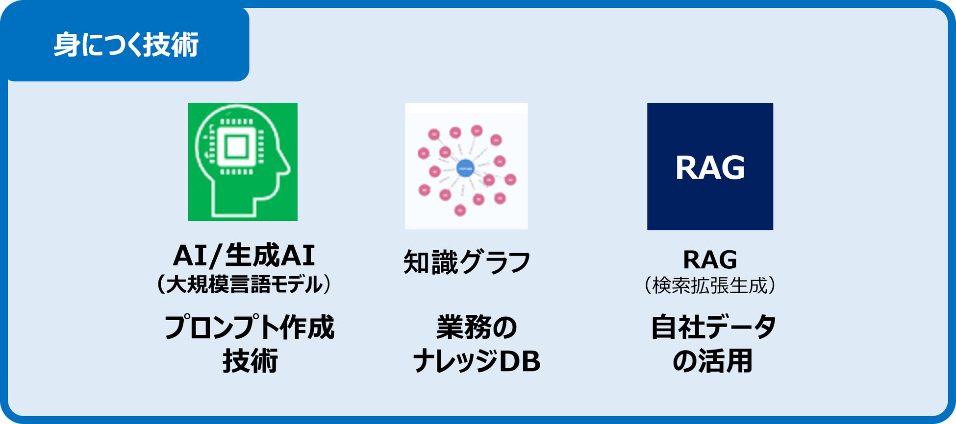 さらに、RAG(Retrieval Augmented Generation)や知識グラフを活用し、自社データの効果的な活用や業務ナレッジの蓄積(業務知識DB)構築もサポートします。