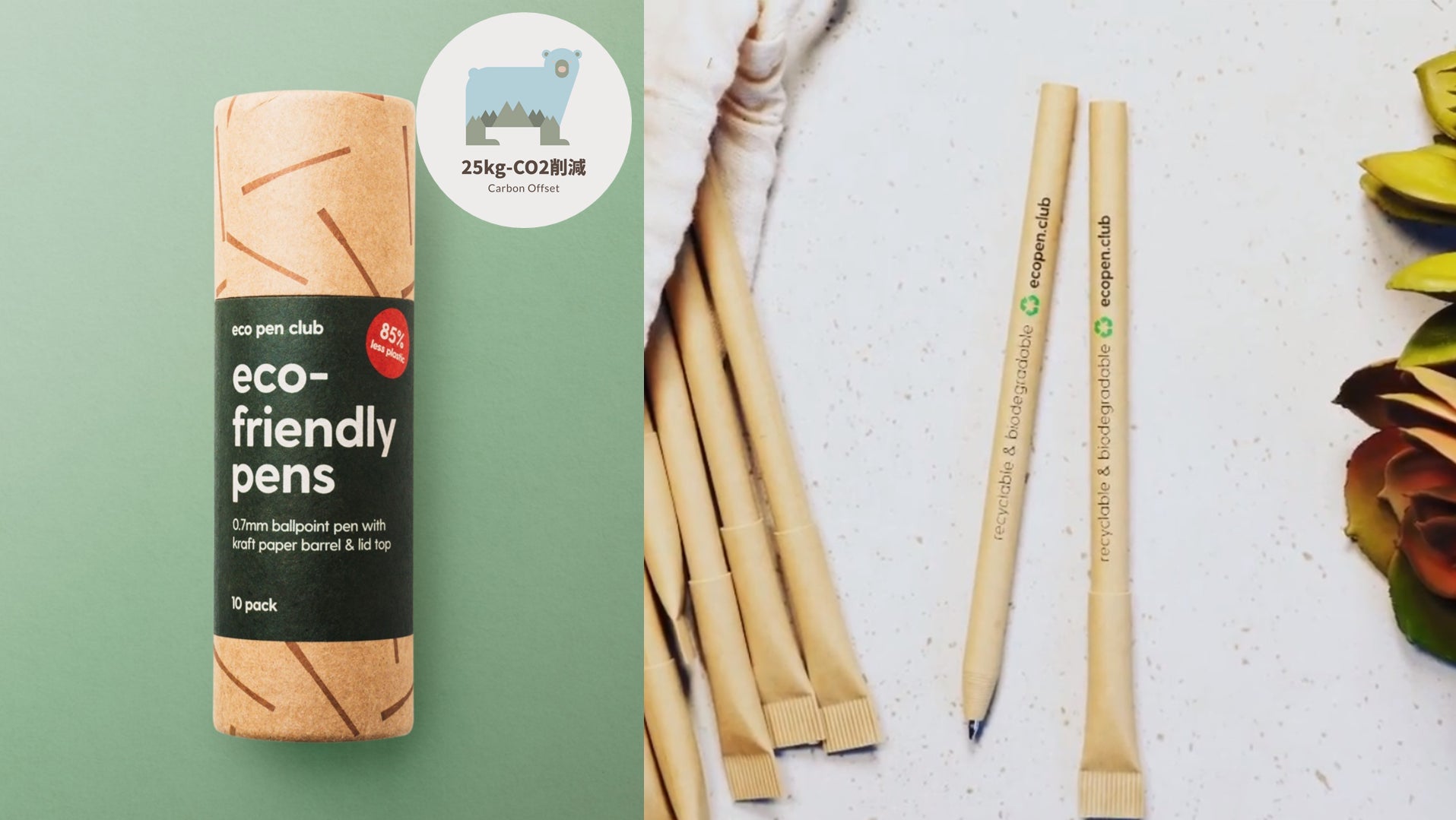 ・ 再生クラフト紙を使用(従来のペンより85%プラスチックを削減)