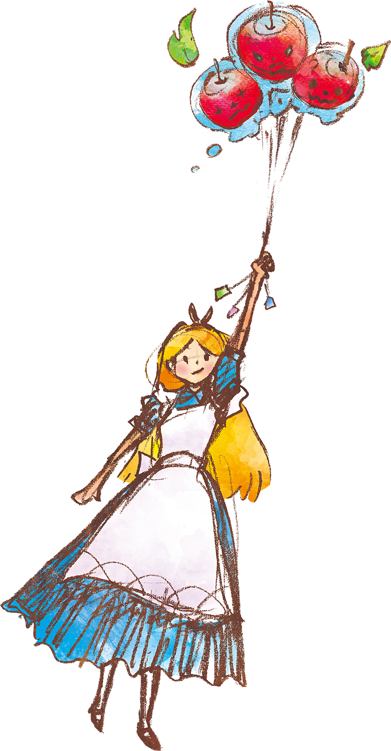 国産果物、無加糖、果汁100%の人気商品「ディーとダムのアップルスムージー」の他、 昨シーズン完売した「アクリルキーホルダー」の新デザインが登場。また、今治タオルとコラボしたアリスツアーズ特製ハンドタオルが新登場します。