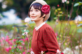 結婚式の「サムシング ブルー」「サムシング オールド」のように、バラのモチーフを身に着ける「サムシング ローズ」でバラ園をより楽しむファッション企画。