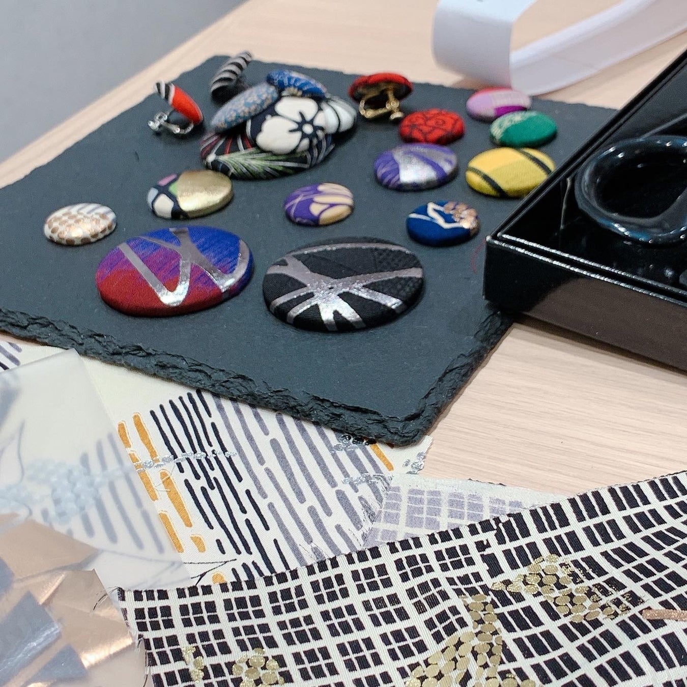 UZ Fabricのアイテムを作る時に出た着物のハギレを使って、