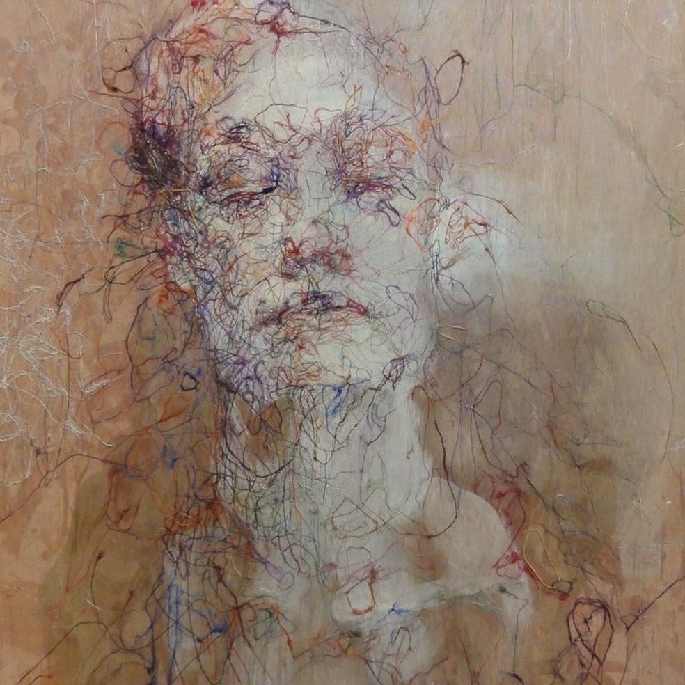 着物の糸を貼り付ける独自の手法「繊維画」の日本唯一の画家。